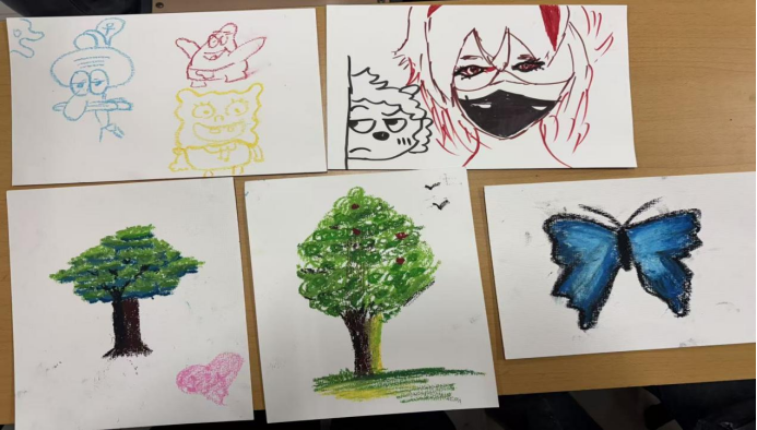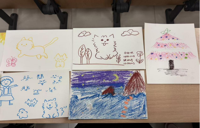 当画纸重新传回初始创作者手中,一幅幅凝聚团队心血、汇聚多人灵感的共创作品跃然眼前。同学们围绕作品展开交流,分享每一处添笔背后的巧思,现场赞叹与欢笑不断。创意活动以非语言的绘画接力为桥梁,培育了学生团队协作意识,增强了情感共鸣。